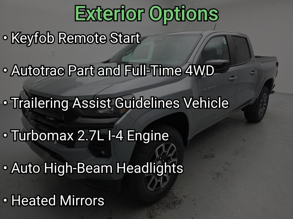 4WD, 360-degree surround-view camera systems, Back-Up Camera, Bluetooth®, Cloth Seats, Heated Front Seats, Power Driver Seat, Blind Spot Monitor, Forward Collision Warning, Lane Departure Warning, Lane Keeping Assist, Rear cross traffic warning, Rear Parking Aid, Adaptive Cruise Control, Automatic emergency braking, Brake Assist, CarPlay/Android Auto, Premium Sound System, Steering Wheel Audio Controls, XM Satellite Radio, Smart Device Integration, WiFi Hotspot, Wireless CarPlay/Android Auto, Wireless Phone Charging, Keyless Entry, Remote start, Auto High Beam Headlights, Heated Mirrors, Auto-dimming mirrors, Tow Hitch, Chevy Safety Assist, Emergency communication system: OnStar, Following Distance Indicator, Front Bucket Seats, Front Pedestrian & Bicyclist Braking, Preferred Equipment Group 4Z7, Rear Pedestrian Alert, Technology Package, 18 Android Dark Full Gloss Aluminum Wheels and much more! Price includes: $1000 - Chevrolet Consumer Cash Program. Exp. 03/02/2026