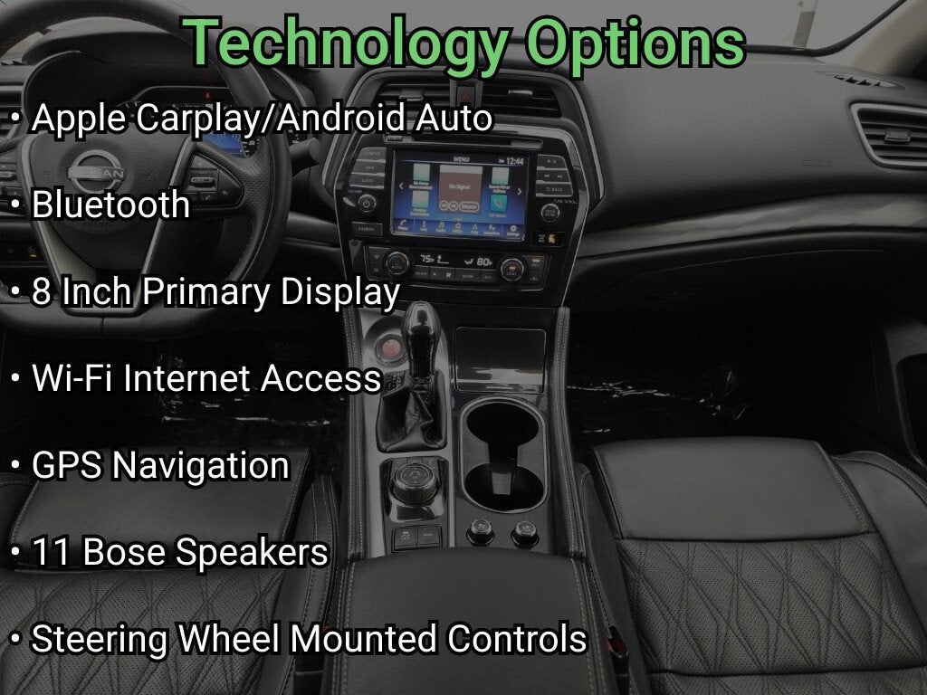 Leather, Heated Front Seats, Rear Heated Seats, Power Driver Seat, Power Passenger Seat, 360-degree surround-view camera systems, Back-Up Camera, Blind Spot Monitor, Forward Collision Warning, Lane Departure Warning, Lane Keeping Assist, Parking Assist Sensors, Rear cross traffic warning, Automatic emergency braking, Brake Assist, Bluetooth® Connection, CarPlay/Android Auto, Navigation, Premium Sound System, Steering Wheel Audio Controls, XM Satellite Radio, Smart Device Integration, WiFi Hotspot, Keyless Entry, Remote start, Auto High Beam Headlights, Heated Mirrors, Auto-dimming mirrors, Sunroof, 19 Aluminum-Alloy Wheels, Emergency communication system: NissanConnect Services, Front Bucket Seats, Heated steering wheel.