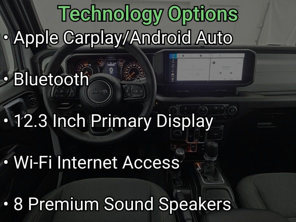 4WD, Cloth Seats, Back-Up Camera, Forward Collision Warning, Adaptive Cruise Control, Brake Assist, Bluetooth® Connection, CarPlay/Android Auto, Steering Wheel Audio Controls, XM Satellite Radio, Smart Device Integration, WiFi Hotspot, Keyless Entry, Tow Hitch, 4.10 Rear Axle Ratio, Front Bucket Seats, Off-Road Plus Mode, Quick Order Package 24W Willys, Wheels: 17 x 7.5 Painted Black, Willy's Suspension.